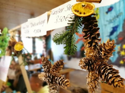Verkauft wurden allerlei selbstgebastelte und im Werkunterricht hergestellte Dinge rund um das Thema Advent und Weihnachten. Von Weihnachtskarten bis hin zu Holzfiguren war für jeden Geschmack etwas dabei, wie die hohe Nachfrage beweist: bereits nach der ersten Pause waren die beiden Stände, die die Schülerinnen und Schüler auch selbst betreuten, restlos ausverkauft.