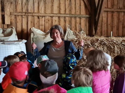 Frühmorgens, frisch getestet und bauernhoftauglich ausgerüstet, ging es mit dem Bus zum Boierhof nach Willmering. Auf dem Boierhof, einem zertifizierten Naturland- und Erlebnisbauernhof wurden wir bereits erwartet. Die Hausherrin Regina Hausladen unternahm eine große Hofführung. Dabei bekamen wir die riesigen Gewächshäuser für das Biogemüse, Getreide,- und Erdbeerfelder, die Maschinenhallen und vieles mehr zu sehen. Besonders beeindruckt waren die Schüler natürlich von den Tieren und deren großzügiger Haltung. Schweine, Rinder, Schafe und Pferde durfte man aus nächster Nähe begutachten. Dabei folgte uns Hofhund „Wastl“ mit seinen vielen Katzenfreundinnen auf Schritt und Tritt. Nach einer Brotzeitpause, in der wir mit Biogemüse und Bioobst bestens versorgt wurden, machten wir uns auf Entdeckertour durch den nagelneuen Landlustwandelweg. Dort gab es jede Menge zu bestaunen, zu sehen, zu hören und anzufassen. Im Streichelzoo wurden Hasen und Meerschweinchen gefüttert. An der Klangstation wurde lautstark musiziert, im Spieltipi konnte man sich ausruhen, am Spieltisch fand ein aufregendes Match statt. In der Kräuterschnecke versuchten wir, die einzelnen Kräuter zu erschmecken, was uns alle vor eine große Herausforderung stellte. Außerdem hatten die Kinder die Möglichkeit, ein eigenes kleines Kräuter- oder Blumenbeet für zu Hause anzupflanzen, was viele begeistert wahrnahmen. Auf dem Landlustwandelweg kann man Natur mit allen Sinnen genießen und erfahren. Der Ausflug war eine tolles Gemeinschaftserlebnis und diente nach langem Lockdown auch hervorragend der Stärkung der Sozialkompetenz der beiden 1. Klassen!