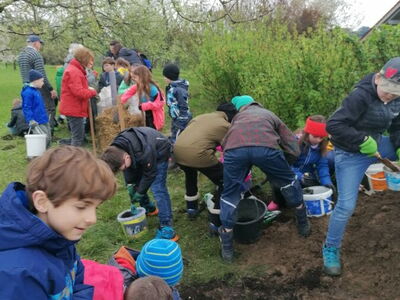 Alle Kinder waren mit Feuereifer dabei und halfen kräftig mit. Erst gegen Mittag waren Kinder und Lehrer müde, aber sehr zufrieden, wieder an der Schule.