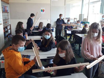 Frau Lange und die Religionslehrerin Frau Steger hatten für die 5. Klässler verschiedene Spiele vorbereitet. So mussten sie zum Beispiel eine Kugelbahn von Schüler zu Schüler bauen und versuchen die Kugel vom ersten Schüler bis zum letzten Schüler quer durch das Klassenzimmer zu balancieren. Die Schülerinnen und Schüler mussten gemeinsam Lösungsstrategien entwickeln um die Kugel sicher ins Ziel zu bringen. Konzentriert und achtsam ging die Klasse ans Werk. Die Kinder erkannten wie wichtig Kommunikation ist, um ein gemeinschaftliches Ziel zu erreichen. Auch im anschließenden Eisschollenspiel bewies sich die Klasse als Gemeinschaft und schaffte zusammen einen gewinnbringenden und respektvollen Umgang untereinander.