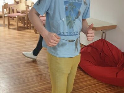 Da unser Termin mitten im Fasching war, wurde am ersten Abend ein Kostüm- und Geschicklichkeitswettbewerb veranstaltet. Es ging dabei um die schnellste Gruppe beim Eierlauf und zusätzlich die besten Verkleidungen als Huhn oder Hahn.