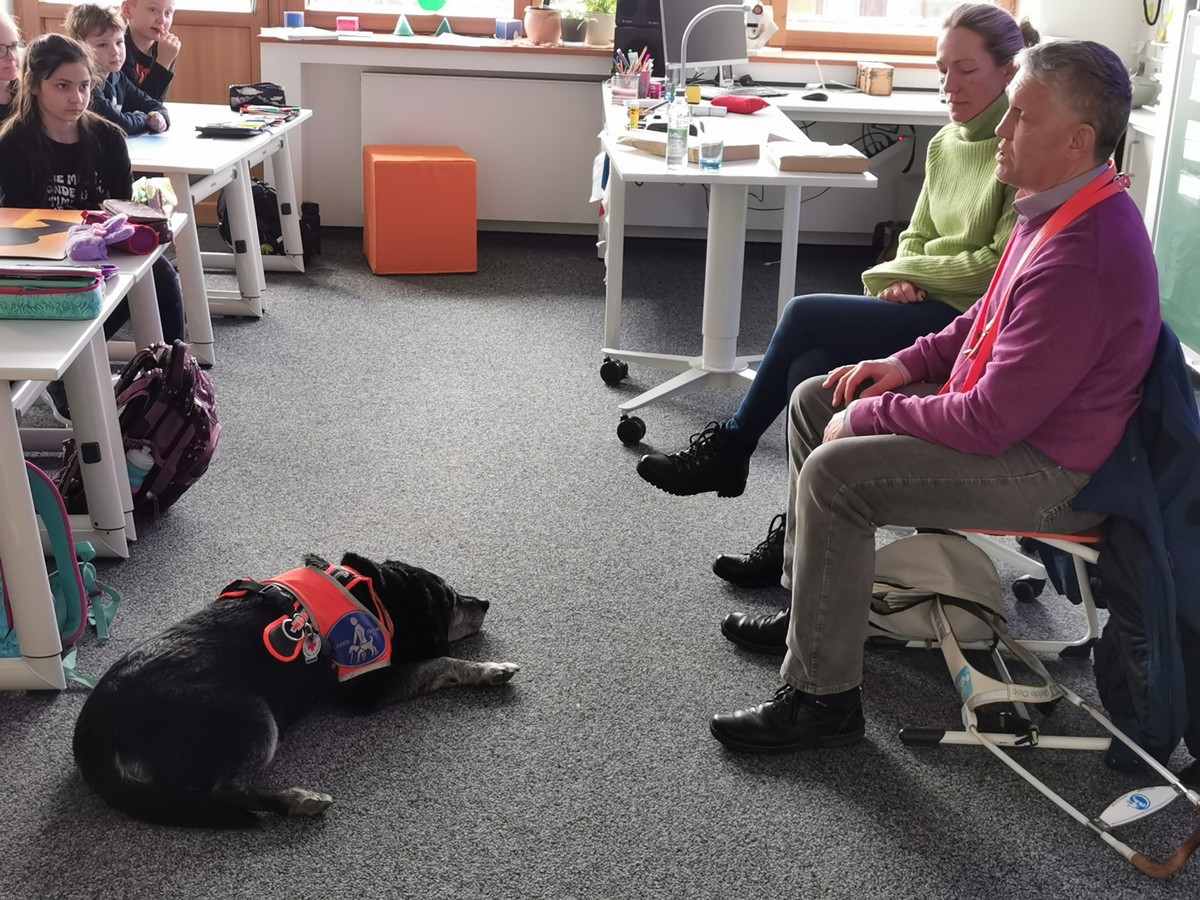 Er ist seit einem Unfall vor 33 Jahren blind und konnte eindrucksvoll erzählen, wie man sein Leben wieder in den Griff bekommt. Mit dabei war sein Blindenführhund Zinga, der eine wichtige Rolle im Alltag spielt.