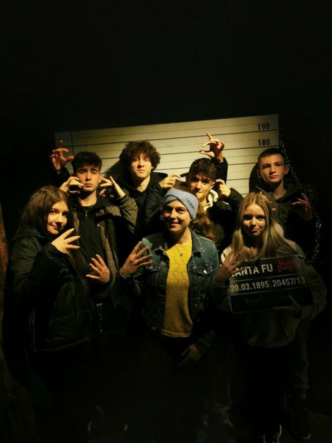 Am dritten Tag starteten wir gespannt ins Hamburg Dungeon. Viele gruselte es bereits beim Anblick der Plakate. In zwei Gruppen aufgeteilt, erlebten wir mit unseren Lehrer/innen mit echten Schauspielern in realistischen 4D-Szenarien, die dunkle Vergangenheit Hamburgs. Besonders die Pest, eine große Sturmflut und ein verheerendes Feuer machten den Hamburgern der letzten Jahrhunderte das Leben oft schwer. Auch eine Fahrt in der Wasserbahn, unheimlichen Mythen über verschollene Bürger und armutsbedingt kannibalistische Schlachter brachten uns ganz schön ins Schwitzen.