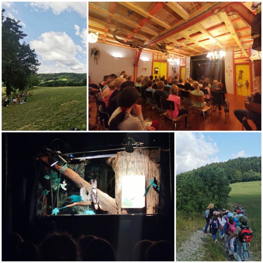 Die Kinder der Grundschule Haselbach unternahmen im Rahmen des Wandertages einen Ausflug zum Pupppentheater "Karotte", wo ihnen Gabi Weißenfels das Stück "Ahorns Welt" in bewährter Weise vorspielte. Unterhaltsam, mitreißend und mit zahlreichen fantastischen Puppen zauberte sie die verschiedenen Charaktere auf die Bühne, was die Schüler am Ende mit einem tosenden Applaus quittierten. Danach machte man sich auf den Weg und erkundete noch etwas die Umgebung von Falkenfels, bevor es wieder mit dem Bus in Richtung Schulheimat ging.