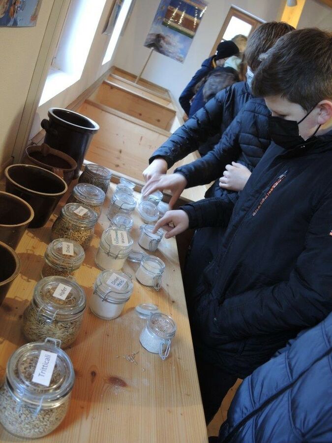 Die Klasse M7 fuhr am Montag, den 29.11.2021 mit ihren Fachlehrerinnen Fr. Bogenberger und Fr. Simmel nach Haibach ins Mühlenmuseum. Für das Projekt “Mehl aus unserer Region”, das in Kooperation der Fächer Ernährung und Gestaltung und Wirtschaft und Beruf durchgeführt wird, wurde vor Ort die Mehlherstellung erkundet. Der Vorsitzende des Mühlenfördervereins Hr. Franz Rainer führte uns in der Mühle über vier Etagen und erklärte dabei sehr anschaulich die Herstellung von Mehl und die Geschichte der Mühle. Außerdem konnten die Schüler und Schülerinnen neben verschiedener Getreidearten auch Proben der einzelnen Mahlschritte (Schrot, Grieß, Dunst und Mehl) vergleichen und fühlen.
