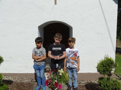 Jedes Kind brachte eine Blume mit, die es Maria zu Ehren vor der Kapelle in eine Vase steckte. Nicht nur die Lehrerinnen trugen Texte vor, sondern auch die Kinder aller Religionen brachten sich durch Fürbitten oder Lieder aktiv in die Maiandacht mit ein. Bei strahlendem Sonnenschein kehrten alle wieder zurück zum Schulhaus, um daran anschließend den Heimweg anzutreten.