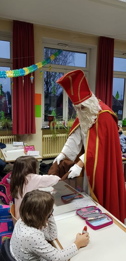 Mit Gedichten und Sprechgesang empfingen die Schülerinnen und Schüler der Klassen 1 und 2 in Haselbach den Hl. Nikolaus. Coronakonform mit Maske und den Mindestabstand einhaltend besuchte er jede einzelne Klasse und fand sowohl lobende, als auch die passenden mahnenden Worte für die Schülerinnen und Schüler der Grundschule Haselbach. Zum Schluss erhielt jedes Kind einen fairtrade Schokonikolaus geschenkt, den der Elternbeirat zur Verfügung gestellt hat. Danach ging es für den Nikolaus weiter nach Mitterfels, um dort die Schüler*innen der Klassen 3 – 10 zu beschenken. Aber nicht nur alle Schülerinnen und Schüler der GS-MS Mitterfels-Haselbach erhielten einen Nikolaus, der Elternbeirat dachte auch an alle Lehrkräfte und helfenden Hände unserer Schule.