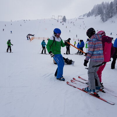 Ab Dienstag wurden Gruppen für die verschiedenen Leistungsstufen gebildet. Die nächsten Tage verbrachte Herr Obermeier mit Unterstützung von Frau Hausladen damit, den Anfängern das Skifahren beizubringen. Herr Schedlbauer zeigte währenddessen mit Hilfe von Frau Wittl den Fortgeschrittenen Übungen, um ihr schon vorhandenes Können zu steigern.