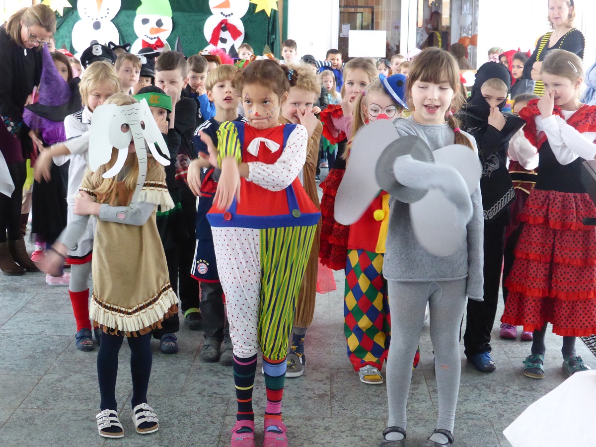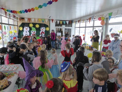 "Trat ich heute vor die Türe!", mit diesem lustigen Lied eröffneten alle Schülerinnen und Schüler der Klassen 1a und 1b ihr Programm, das sie zusammen mit ihren Lehrerinnen für das Faschingsfrühstück zusammengestellt hatten. Besonders herzlich begrüßte Birgit Fuchshuber die anwesenden Ehrengäste, die es sich nicht nehmen ließen, sich auch dieses Mal Zeit für die Kinder zu nehmen. Bürgermeister Johann Sykora wurde mit einem tosenden Applaus begrüßt, ebenso Gemeinderätin Gunda Häuslbetz, Frau Baumgartner und Frau Zollner vom Förderkreis Kinder und Jugend Haselbach, der immer ein offenes Ohr für die Wünsche der Schule hat. Stets werden Projekte wie Autorenlesungen, ein Vortrag über die Wintervogelfütterung oder der Besuch bei den Straubinger Figurentheatertagen mit einer Finanzspritze unterstützt. Ebenso war die Leiterin der Offenen Ganztagsschule Frau Schleinkofer anwesend und Rektorin Bianca Luczak kam ebenfalls lustig verkleidet nach Haselbach. Die Kinder der Klasse 2b tanzten und sangen zu dem Lied "Wenn der Elefant in die Disco geht", bevor einige Kinder der Klasse 2a das Gedicht „Karneval, Karneval“ vortrugen. Mit `Laurentia" (Klasse 1a und 1b) ging es weiter im Programm, bevor noch alle gemeinsam das Fliegerlied laut und kräftig miteinander anstimmten und dazu tanzten. Endlich konnten sich die zahlreichen Schüler am Buffet anstellen, das Mitglieder des Elternbeirats und fleißige Mütter unter der Führung von Elternbeiratsvorsitzender Frau Dorner zubereitet und bereitgestellt hatten. Von gesundem Obst und Gemüse bis Broten mit schmackhaften Aufstrichen war für jeden Gaumen etwas dabei. Und natürlich durften auch Leckereien nicht fehlen. In launiger Runde wurde gefrühstückt, bis die Tische leer gegessen waren. Anschließend kehrten die maskierten Schüler wieder in ihre Klassen zurück, wo sie frisch gestärkt rechnen, lesen, singen, turnen oder malen durften.