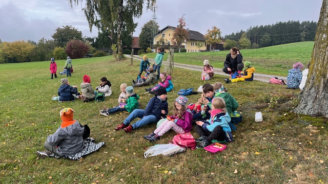 Auch wenn es kein goldener Oktobertag war, trotzdem machten sich die Kinder der Klassen 1a und 1b gemeinsam auf, um an ihrem 1. Wandertag Herbstschätze zu sammeln.